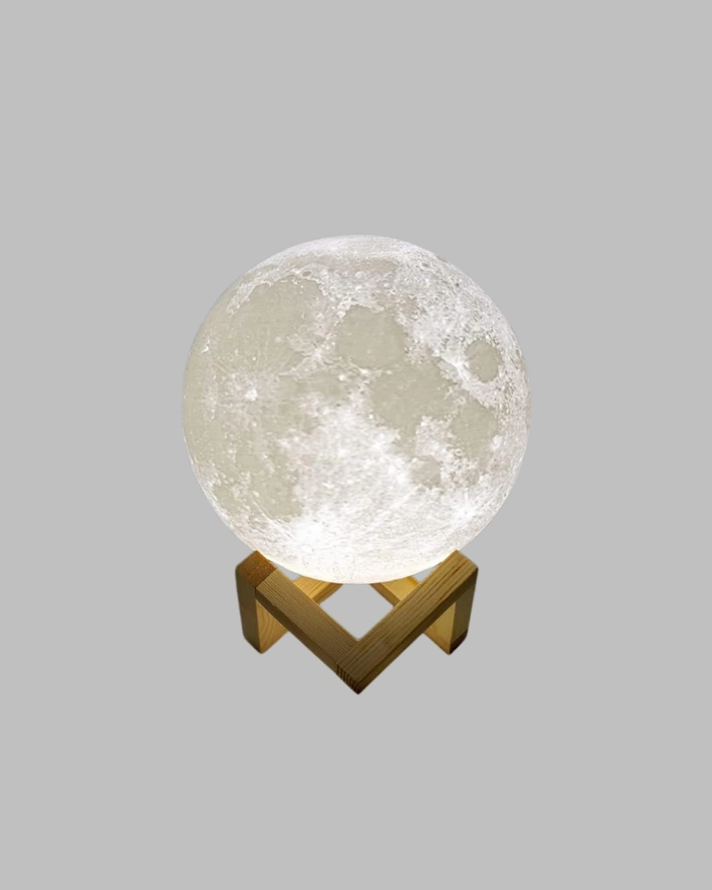 BFS Şarjlı 3D Baskılı 16 Renk Ay Lambası Ahşap Stand ve Uzaktan Kumanda