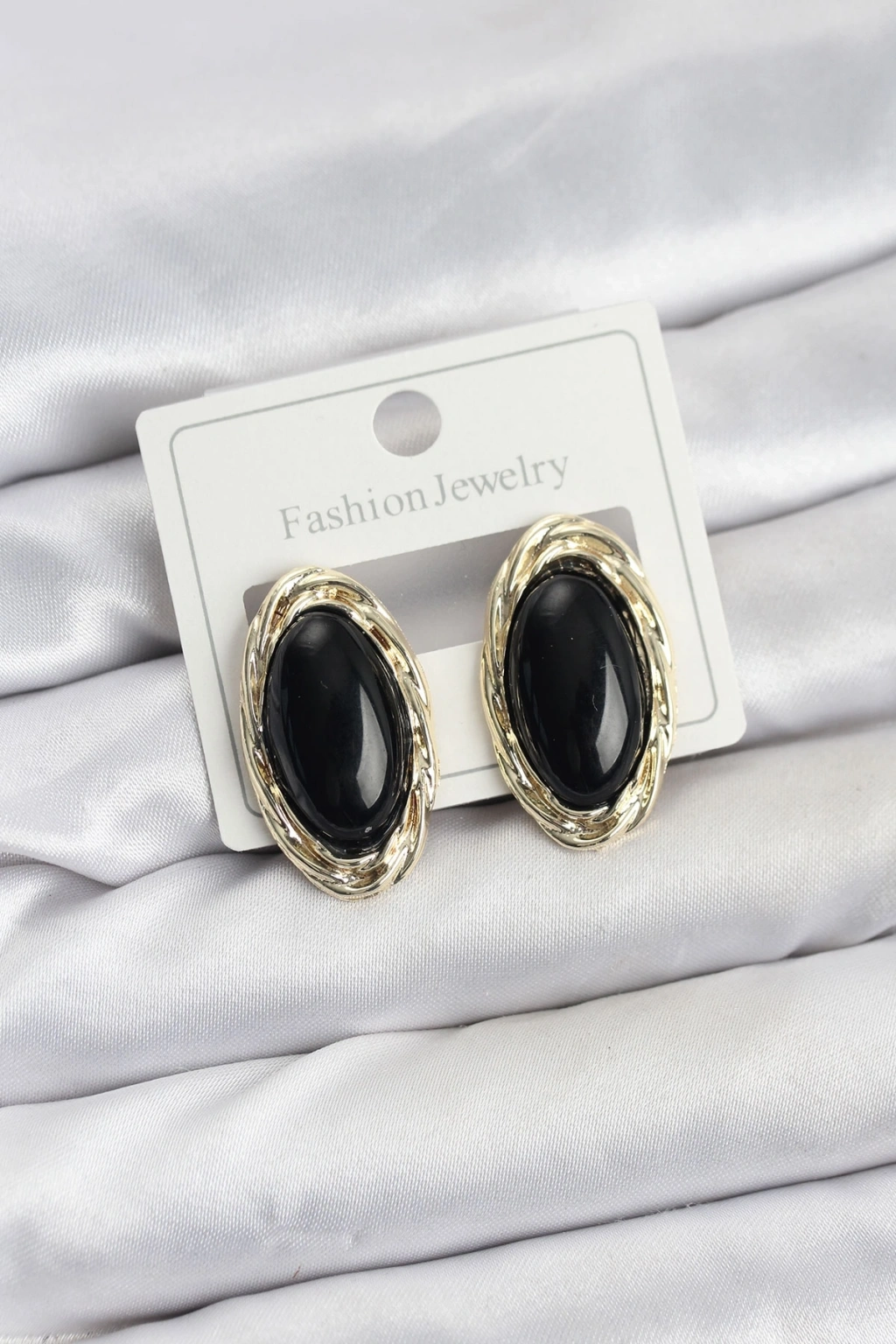 BFS Siyah Badem Model Vintage Kadın Küpe