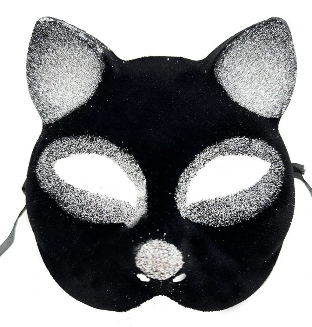 BFS Siyah Renk Gümüş Simli Süet Kaplama Kedi Maskesi 18x14 cm