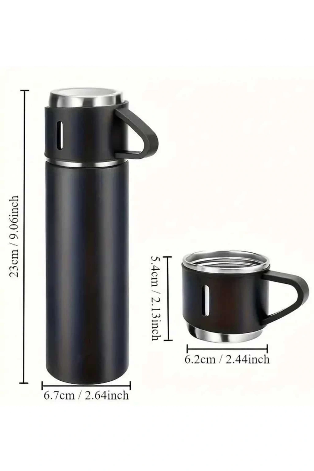 BFS Termos Seti Paslanmaz Çelik 3 Bardaklı Vakumlu Termos Set 500 Ml 12 Saate Kadar Isı Koruma