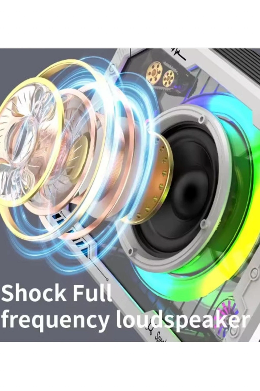 Şeffaf Mecha Müzik Tws Stereo Rgb İşıklı Hoparlör Kablosuz Bluetooth 5.0 Taşınabilir Hoparlör V9