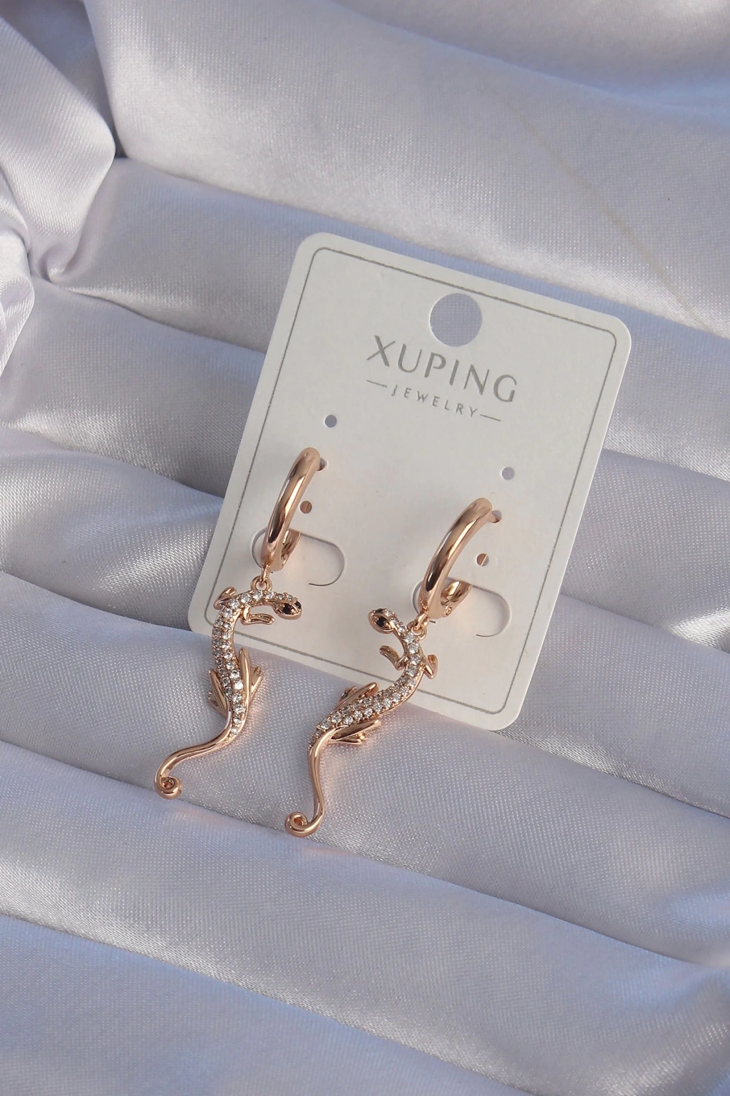 BFS XUPİNG Rose Renk Zirkon Taşlı Kertenkele Model Halka Küpe