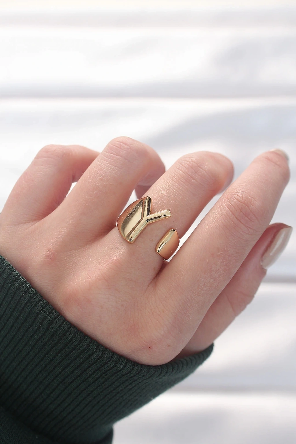 BFS Y Harfli Altın Renk Ayarlanabilir Yüzük