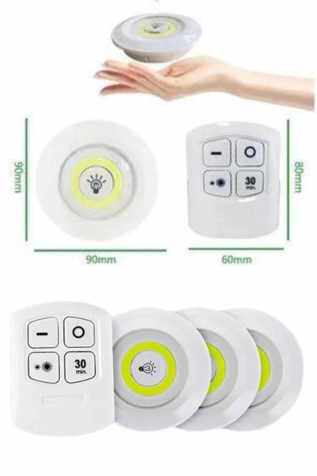 BFS Yapışkanlı 3'lü Spot Led Işık Lamba Montajsız Pilli Uzaktan Kumandalı
