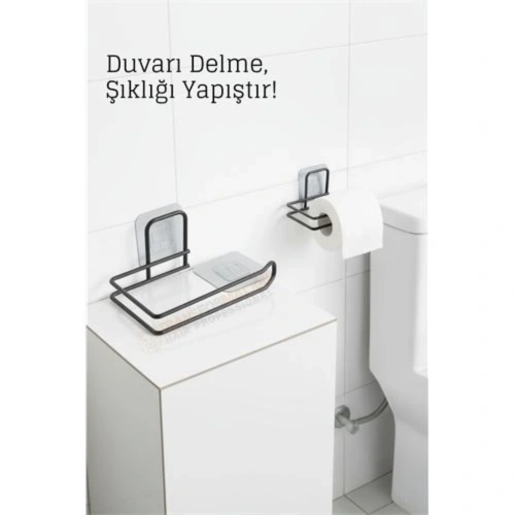 BFS Yapışkanlı Tuvalet Kağıdı Tutucu – Siyah Metal 14 x 7,5 cm
