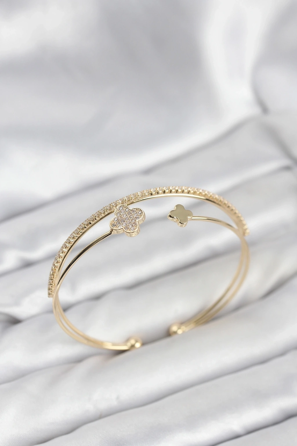 BFS Yonca Çiçek Model Pirinç Gold Renk Kadın Bileklik