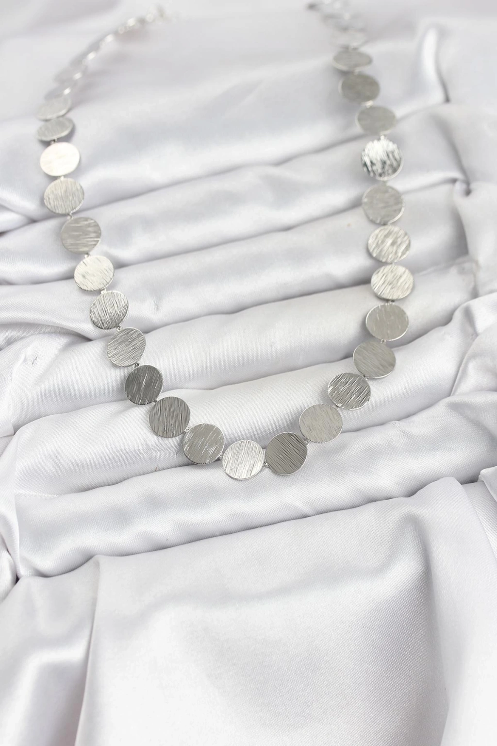 BFS Yuvarlak Plaka Model Gümüş Renk Kadın Kolye