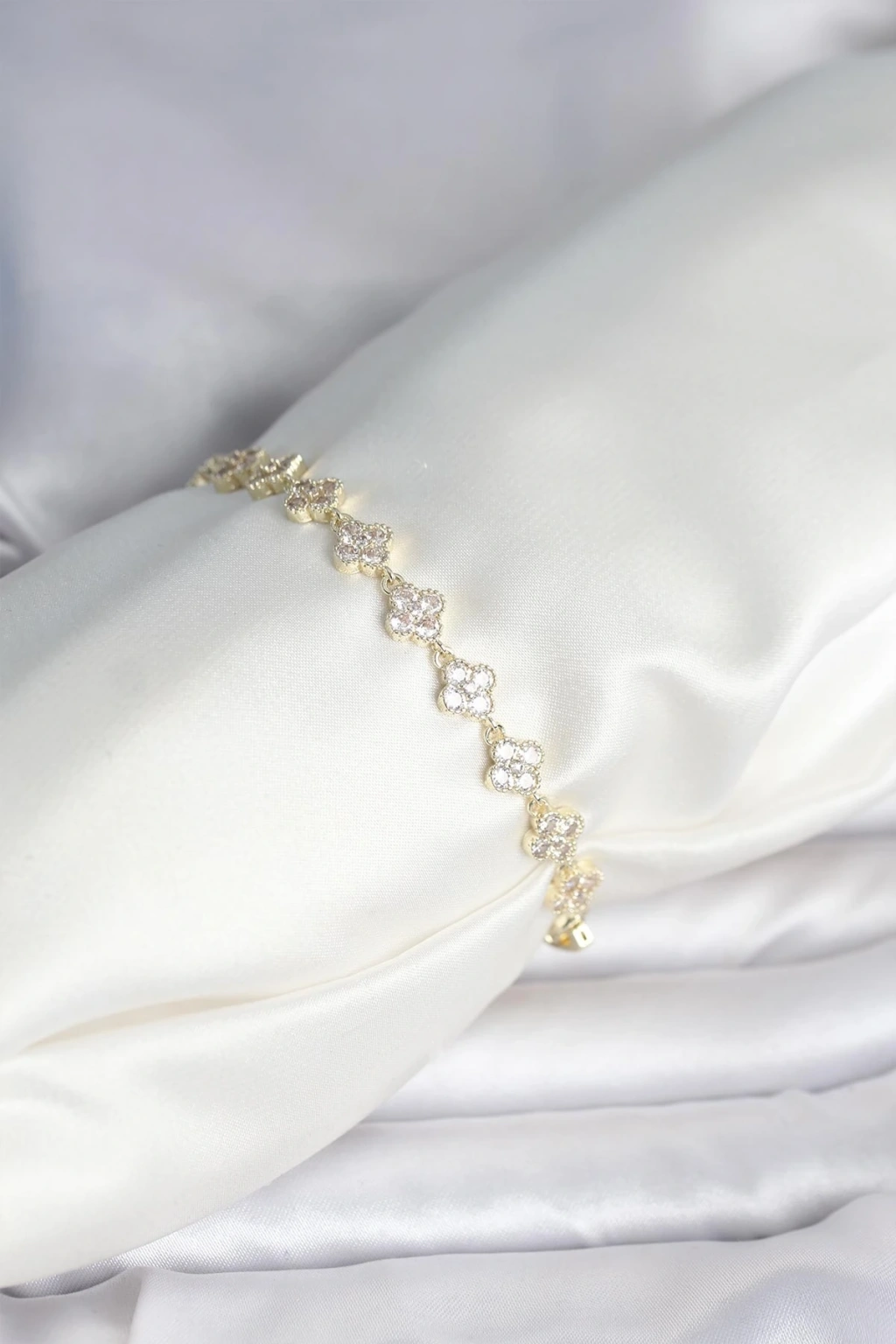 BFS Zirkon Taşlı Pirinç Yonca Model Bileklik