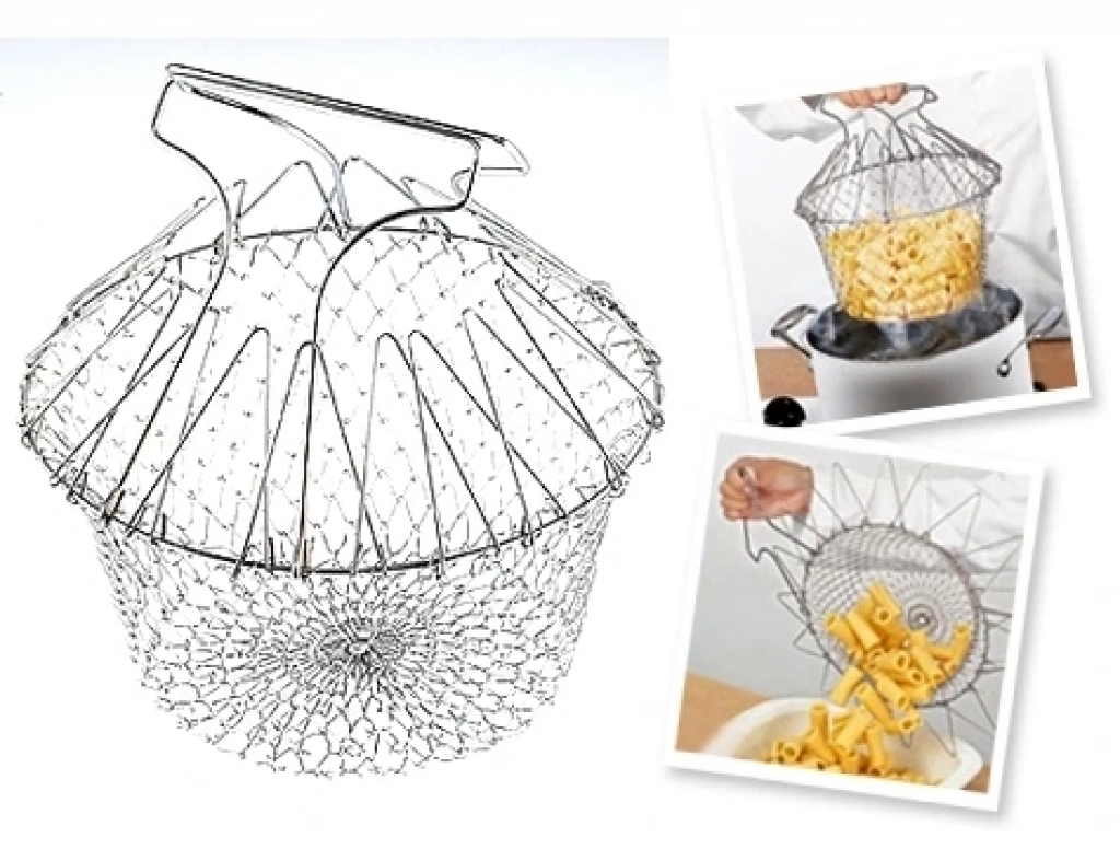 Makarna haşlamak, patates kızartmak, buharda pişirmek, yiyecekleri yıkayıp süzmek ve birçok şey için mutfakta mükemmel bir yardımcı!