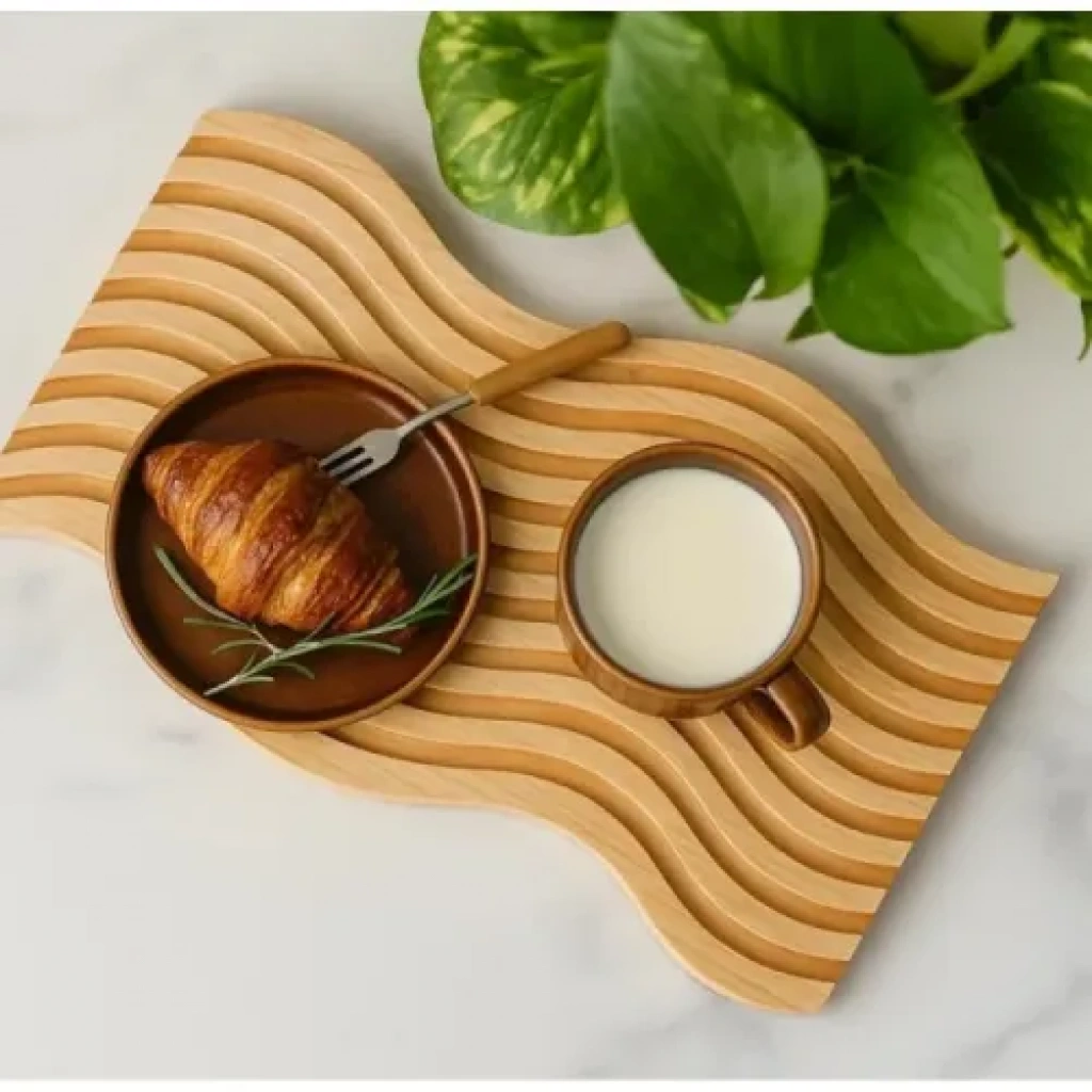 Ürün ÖzellikleriDalgalı formda özel tasarımıyla öne çıkan bu çift taraflı ahşap sunum tepsisi, hem estetik hem de fonksiyonel kullanımlar için idealdir. 39x15 cm ölçülerindeki bu şık sunum tepsisi, bambu benzeri doğal ahşap malzemeden üretilmiştir. Bir yüzü düz, diğer yüzü oluklu tasarımıyla farklı sunum konseptlerine uyum sağlar. Kahvaltılık, atıştırmalık, peynir, kuruyemiş veya tatlı gibi yiyeceklerin sunumunda hem günlük kullanım hem de özel davetler için uygundur. Ahşap yapısı doğal görünüme katkı sağlarken, kolay temizlenebilir yüzeyi ile pratik kullanım sunar.Paket İçeriği1 Adet Dalgalı Çift Taraflı Ahşap Sunum Tepsisi