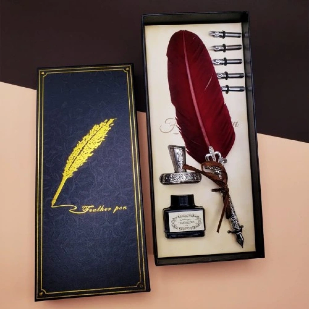Divit Kalem Mürekkepli Divit Kalem Seti, özenle tasarlanmış tüylü detayları ve nostaljik görünümüyle dikkat çeken şık bir yazı setidir. Hem dekoratif hem de işlevsel kullanıma uygun olan divit kalem; öğretmenler günü, sevgililer günü, anneler günü, babalar günü gibi özel günlerde sevdiklerinize hediye edebileceğiniz en zarif ürünlerden biridir.Tüylü tasarımı sayesinde masanızda, ofisinizde veya ev dekorasyonunuzda estetik bir görünüm sunar. Hediye seti olarak sunulan bu ürün, yazı yazmayı sevenler için olduğu kadar koleksiyon yapanlar için de ideal bir seçenektir.Ürün ÖzellikleriDivit kalem metal uçlu ve tüylü tasarıma sahiptirSet yanında 5 farklı yazı ucu bulunmaktadırÖzel divit mürekkebi set içerisinde yer alırMasaüstü kalem tutucu aparatı mevcutturÖzel tasarımlı hediyelik kutusunda gönderilirŞık görünümü ile hem dekor hem de kullanım amaçlı tercih edilebilirPaket İçeriği1 adet tüylü divit kalem1 adet masaüstü kalemlik1 adet mürekkep şişesi5 adet farklı divit uç başlığı