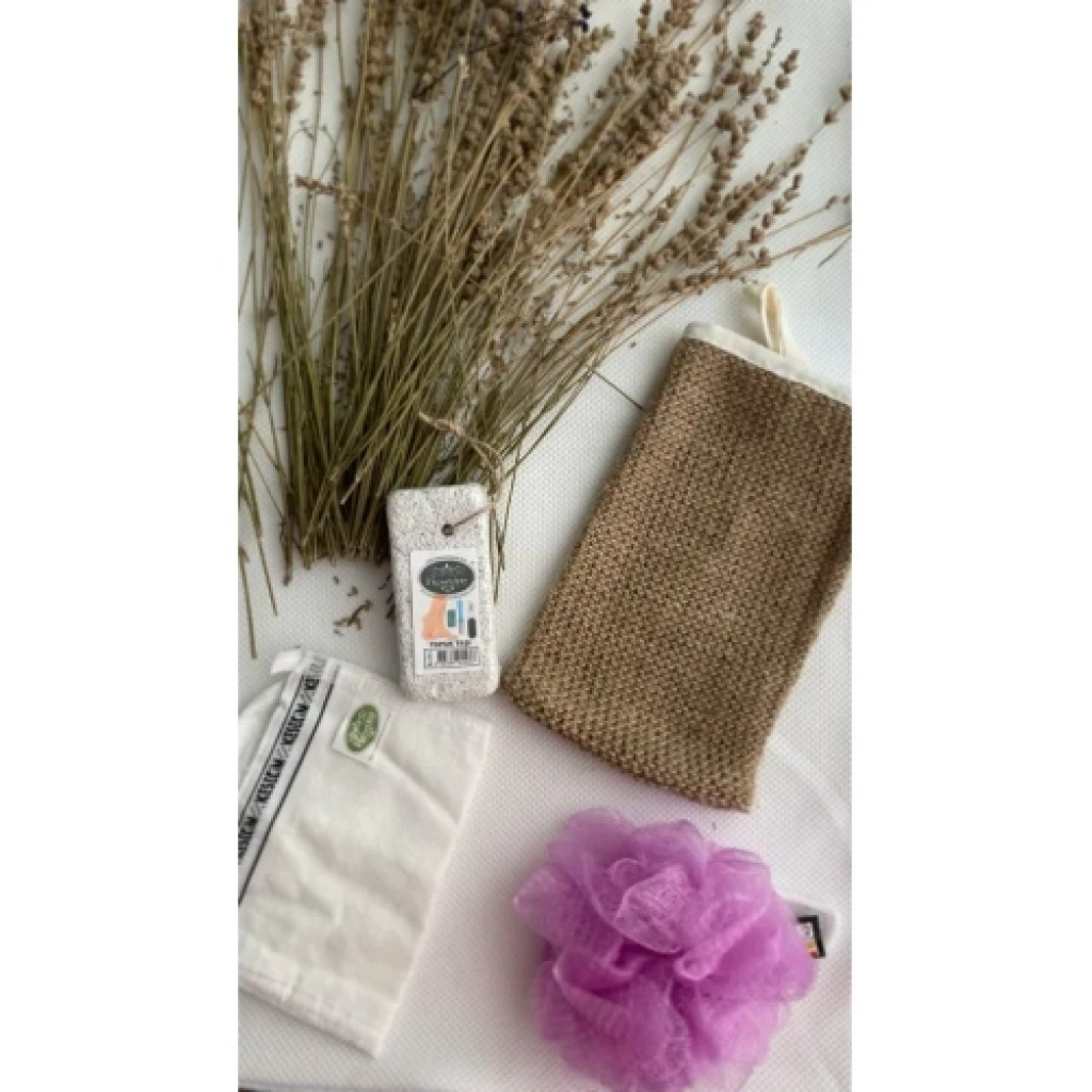 Doğal 4’lü Banyo Hamam Seti – Kabak Lifi, Vücut Kesesi, Ponza Taşı, Top Lif%100 Doğal 4’lü Banyo Hamam Seti, cilt temizliği ve ölü derilerden arındırma için tasarlanmış, dört parçadan oluşan bir kişisel bakım setidir. Bu set, doğal kabak lifi, vücut kesesi, ponza taşı ve top lif ile cildinizi yeniler, canlandırır ve pürüzsüzleştirir.Set İçeriğiKabak Lifi:%100 doğal kabak lifinden üretilmiştir.Cildi ölü derilerden arındırır, kan dolaşımını hızlandırır ve daha canlı bir görünüm kazandırır.Yumuşak ve esnek yapısı sayesinde ciltte tahrişe neden olmaz.Vücut Kesesi:Yumuşak ve esnek lif dokusuna sahiptir.Cildin derinlemesine temizlenmesine yardımcı olur.Kan dolaşımını artırarak cildin parlak ve sağlıklı görünmesini sağlar.Ponza Taşı:Ayak ve ellerdeki nasır, batık ve ölü derileri nazikçe temizler.Cildi pürüzsüzleştirir ve yumuşak bir dokunuş kazandırır.Kullanım sonrası nemlendirme önerilir.Top Lif:Tüm vücuda masaj yapmak için idealdir.Kan dolaşımını hızlandırır, stresi azaltır ve rahatlatıcı bir banyo deneyimi sunar.Cildi yumuşatır ve nemlendirir.Setin FaydalarıCildi ölü derilerden arındırır ve canlandırır.Kan dolaşımını destekler ve pürüzsüz bir cilt sağlar.Nasır, batık ve sertleşmiş bölgelerin temizlenmesine yardımcı olur.Masaj etkisiyle rahatlatıcı bir banyo deneyimi sunar.Doğal ve uzun ömürlü malzemelerden üretilmiştir.Kullanım TalimatıKabak lifi ve vücut kesesi: Islatın, sabunla köpürtün ve cilde dairesel hareketlerle uygulayın.Ponza taşı: Islak cilde, özellikle nasırlı bölgelere nazikçe sürün.Top lif: Vücuda masaj yaparak kan dolaşımını artırın.Bakım TalimatıTüm parçaları her kullanımdan sonra sabunlu suyla yıkayın ve iyi durulayın.Havadar bir yerde kurutun.Ponza taşını nemli bırakmayın; kuru ortamda saklayın.
