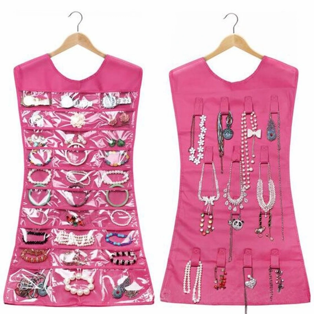 Böylece bir tarafta açık cepler ve diğer asılı döngüler ile kolayca takı koleksiyonunu görebilirsiniz