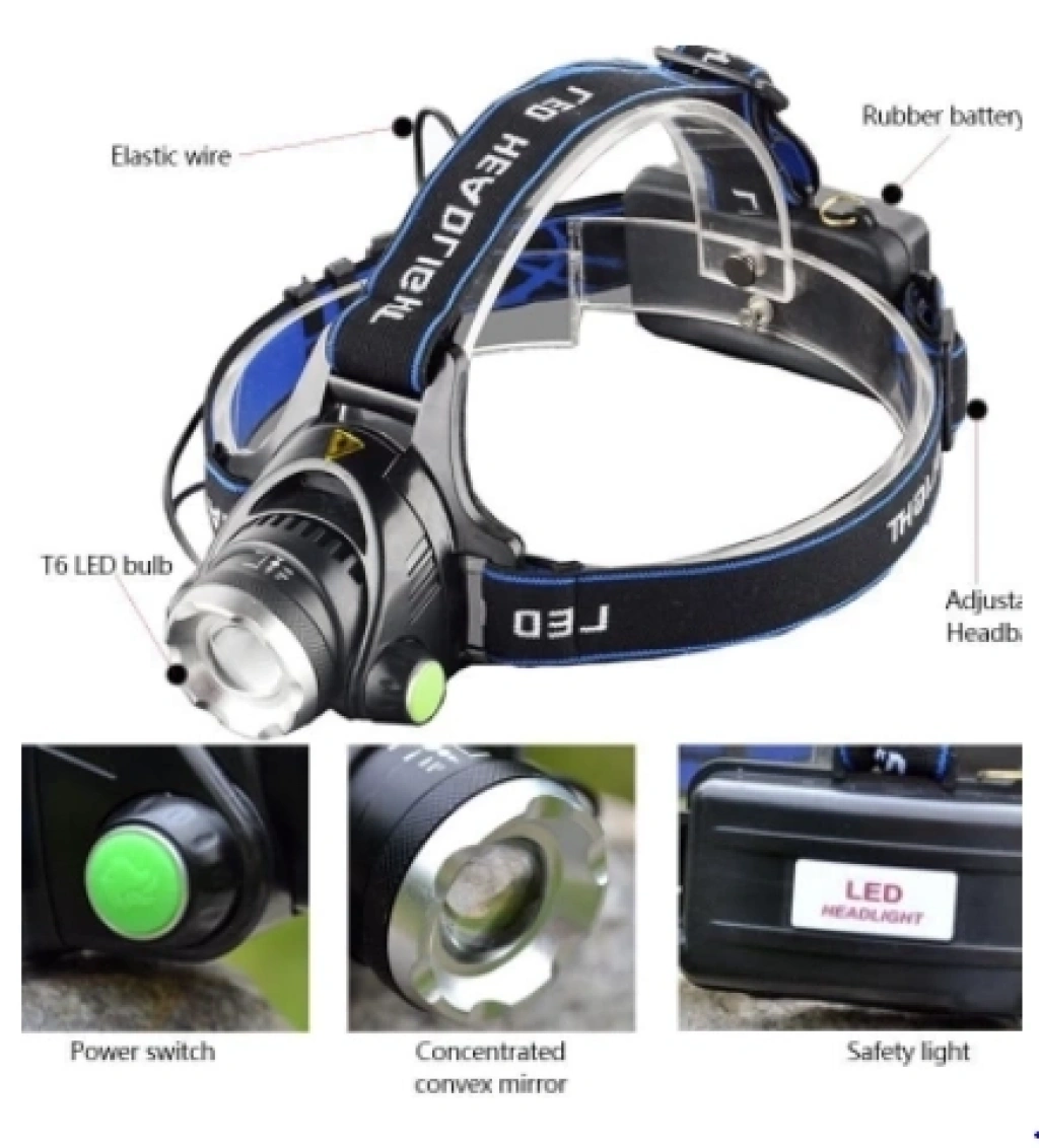 BFS Outdoor ve Gece Balıkçılığı İçin LED Kafa Lambası – USB Şarjlı, 60° Ayarlanabilir Far