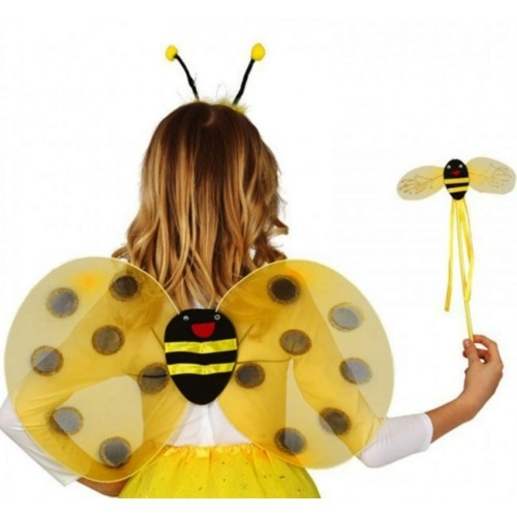 Gösteri Arı Kostüm SetiGösteri, sevimli ve eğlenceli tasarımıyla çocukların ilgisini çeken bu arı kostüm seti; okul etkinlikleri, doğum günü partileri, sahne gösterileri ve temalı organizasyonlar için ideal bir aksesuardır. Arı figürleriyle süslenmiş detayları sayesinde neşeli ve dikkat çekici bir görünüm sunar.Set içerisinde yer alan parti kanadı tül malzemeden üretilmiştir. Açık haliyle 47 cm genişliğinde ve 36 cm yüksekliğindedir. Üzerinde sevimli bir arı figürü bulunmaktadır. Kanatların arka kısmında bulunan lastikli askılar, kollarınızdan geçirilerek kolay ve rahat bir kullanım sağlar.Uçlarında yuvarlak sarı arı figürleri bulunan taç, esnek yapıya sahiptir ve farklı baş ölçülerine kolaylıkla uyum sağlar. Hafif yapısı sayesinde uzun süreli kullanımlarda rahatsızlık vermez.Setin tamamlayıcı parçası olan arı asası, 30 cm yüksekliğindedir. Kurdelelerle süslenmiş olup üst kısmında arı figürü yer almaktadır. Sahne ve oyun sırasında kostümü bütünleyen eğlenceli bir aksesuardır.Ürün üzerindeki model ve figürlerde küçük farklılıklar görülebilir. Hafif ve kullanışlı yapısı sayesinde çocukların rahatça hareket etmesine olanak tanır.Doğum günü partileri, okul gösterileri, kostüm günleri, tiyatro sahneleri ve eğlenceli fotoğraf çekimleri için sevimli ve eğlenceli bir kostüm setidir.