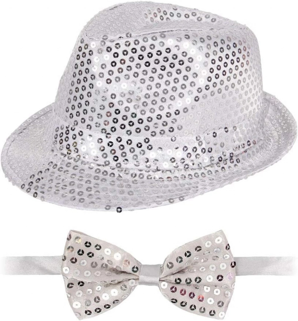 Gümüş Payetli Şapka Ve Papyon Seti – Parıltılı Yetişkin Kostüm Seti