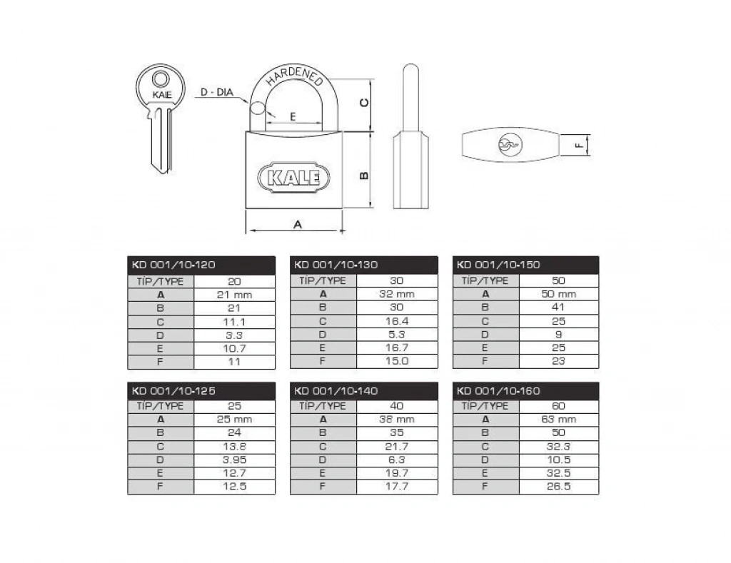 Kale 63 mm Gri Asma Kilit KD-001/10-160