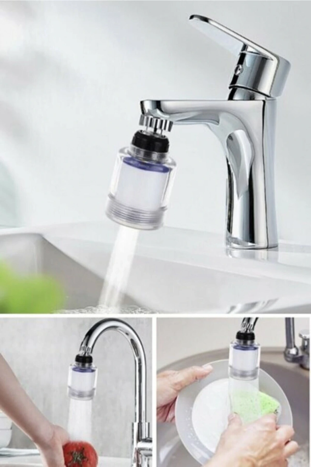 Filtreli Su Tasarruflu 3 Fonksiyonlu Oynar Musluk Başlığı - Şeffaf