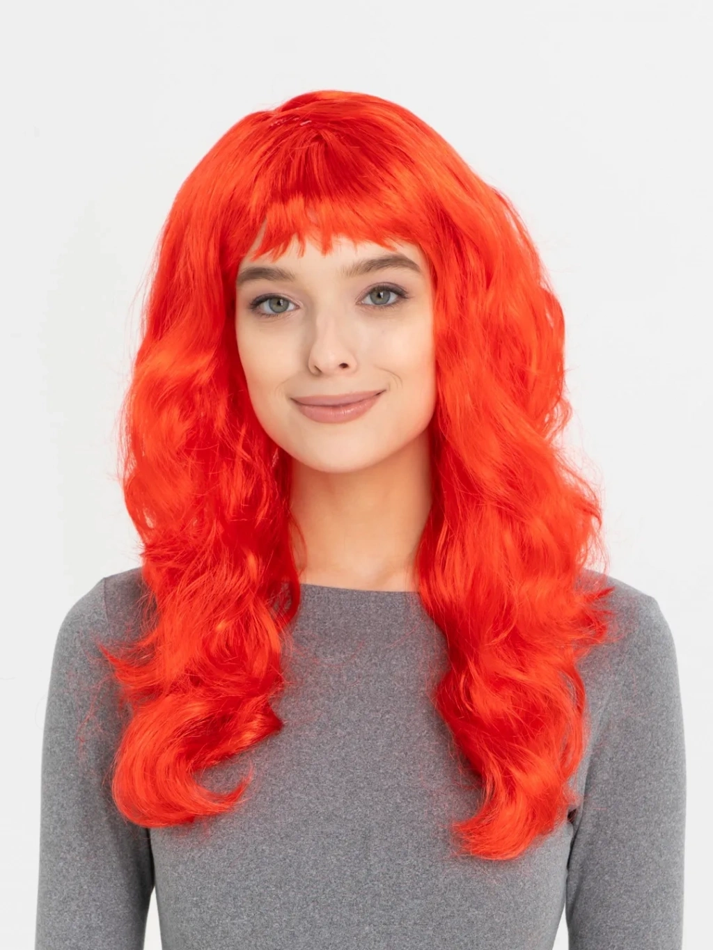 Kırmızı Renk Uzun Dalgalı Parti Peruğu