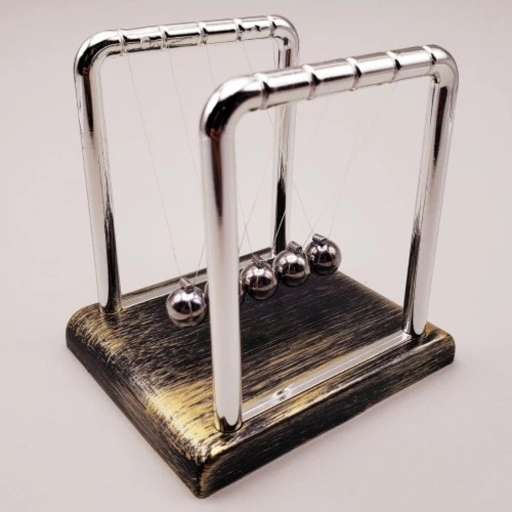 Küçük Boy Denge Topu Küçük boy denge topu, eskitme renge sahip vintage tasarımı ile masanıza veya ofisinize şık bir dokunuş katar. Metal topları birbirine vurdurarak izlemek hem eğlenceli hem de stres atmanızı sağlayan bir deneyim sunar. Kendiliğinden durabilen topları ve nostaljik tasarımı ile dikkat çeken bu mini denge balans, sevdiklerinize hediye edebileceğiniz eşsiz bir dekoratif üründür.Gold Eskitme Balans Özellikleri:Kaliteli plastik malzemeden üretilmiştir.Toplar metal malzemeden yapılmıştır.Stres anında rahatlama sağlar.Şık ve dikkat çekici vintage tasarım.Sarı eskitme renk ile dekoratif kullanım için idealdir.Gold Mini Newton Denge Balans Ölçüsü:9.5 cm x 7.5 cm x 9 cm