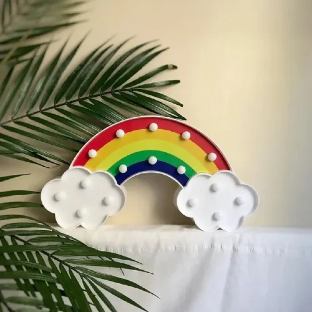Led Işıklı Gökkuşağı Gece LambasıÜrün Açıklaması:Odanıza neşe ve renk katmak için tasarlanan Led Işıklı Gökkuşağı Gece Lambası, hem dekoratif hem de işlevsel bir aydınlatma ürünüdür. Gökkuşağı tasarımıyla çocuk odalarına, yatak odalarına veya yaşam alanlarınıza sıcak ve huzurlu bir atmosfer kazandırır. Gün ışığı tonundaki LED aydınlatması göz yormaz ve loş bir ortamda hoş bir ambiyans oluşturur.Duvara asılabilir yapısı ve hem dikey hem yatay kullanım imkânı ile istediğiniz şekilde konumlandırabilirsiniz. 2 adet kalem pil ile çalışır ve açma-kapama düğmesi sayesinde pratik bir kullanım sunar.Ürün Özellikleri:Dekoratif LED ışıklı gece lambasıGün ışığı tonunda aydınlatma2 adet kalem pil ile çalışır (piller dahil değildir)Boyut: 30 x 16 cmHem dikey hem yatay kullanımDuvara asılabilir tasarımAçma-kapama düğmesi ile kolay kontrolKullanım Alanları:Çocuk odasıYatak odasıSalon dekorasyonuGece lambası veya ambiyans ışığı olarakPaket İçeriği:1 x Led Işıklı Gökkuşağı Gece Lambası