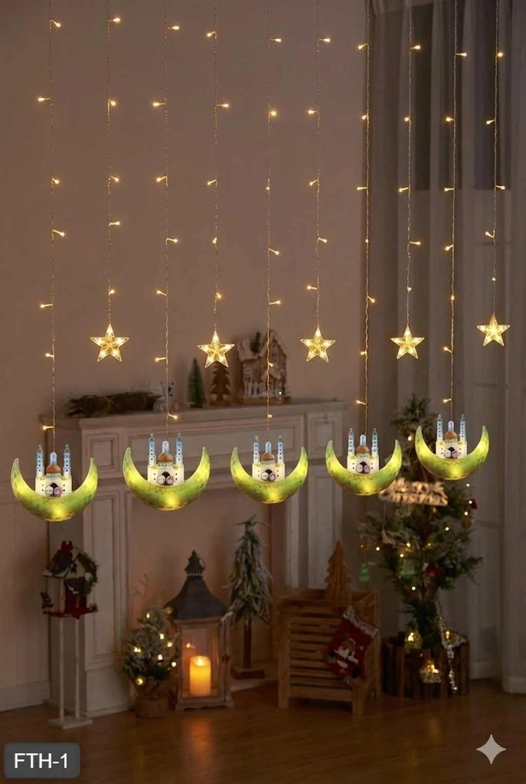 Mey İthalat® Hilal Yıldız Perde LED Işık 2 Modlu Sıcak Beyaz Dekoratif Aydınlatma