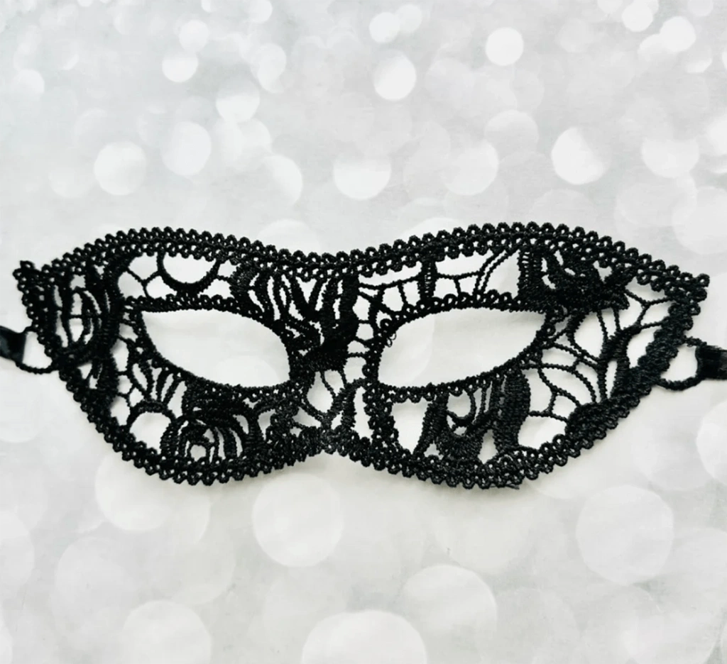 Mey İthalat® Siyah Renk Kedi Model Dantel İşleme Parti Maskesi 12 No