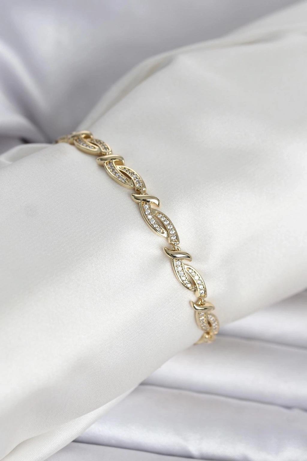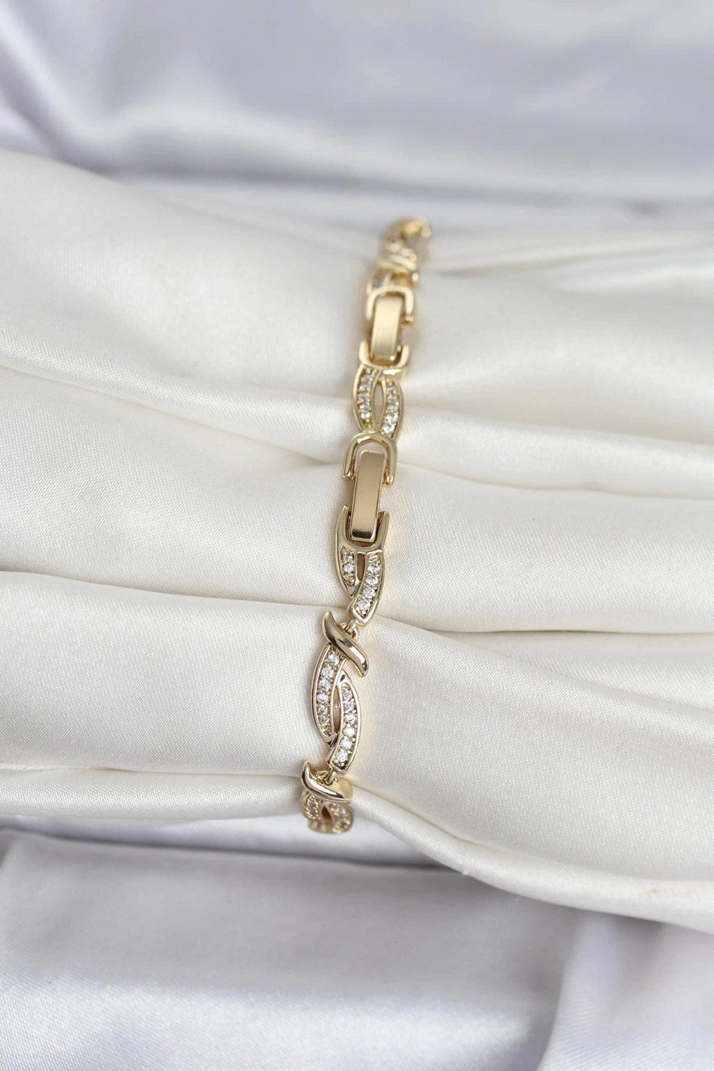 Mey İthalat® Pirinç Zirkon Taşlı Gold Renk Su Yolu Bileklik