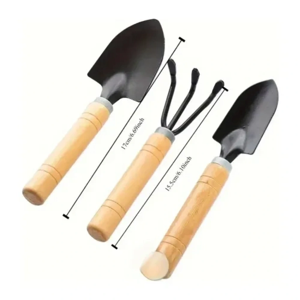 Mini Kazma, Kürek ve Tırmık Seti - 3 Parça Portatif Bahçe SetiÜrün AçıklamasıKüçük dokunuşlarla büyük bahçeler yaratın! Mini Kazma, Kürek ve Tırmık Seti, saksı bakımı, sukulent yetiştiriciliği ve hobi bahçeciliği ile ilgilenenler için mükemmel bir başlangıç setidir. Ergonomik ahşap sapları ve dayanıklı metal uçları sayesinde hassas bitkilerinizin bakımını köklere zarar vermeden kolayca yapabilirsiniz. Kompakt boyutları sayesinde evde, balkonda veya kamp çantanızda her an yanınızda bulundurabileceğiniz profesyonel bir hobi setidir.Ürün Özellikleri3'lü Fonksiyonel Set: Kazma, kürek ve tırmıktan oluşan bu set; toprak havalandırma, fide dikme, tohum ekme ve düzenleme işlemlerinin tamamını tek pakette sunar.Ergonomik Ahşap Saplar: Doğal ahşap tasarımı sayesinde elinize tam oturur, terletme yapmaz ve uzun süreli kullanımlarda konforlu bir tutuş sağlar.Dayanıklı Metal Başlıklar: Sertleştirilmiş metal uçlar, toprağı kolayca işlemenizi sağlar ve bükülmelere karşı dirençlidir.Sukulent ve Saksı Dostu: Dar saksılarda ve küçük bitkilerde çalışmak için özel olarak boyutlandırılmıştır; bitki köklerine ve gövdelerine zarar vermez.Portatif Tasarım: Hafif ve kompakt yapısı ile çekmecenizde yer kaplamaz, kamp ve outdoor gezilerinde kolayca taşınabilir.Kullanım AlanlarıEv ve Balkon Bahçeciliği: Saksı çiçeklerinin toprak değişimi ve düzenli bakımı.Hobi Alanları: Sukulent, kaktüs ve bonsai ağaçları için hassas toprak işleme.Kamp ve Doğa: Çadır çevresi düzenleme veya ateş çukuru hazırlığı gibi küçük outdoor görevleri.Eğitim: Çocuklara doğa sevgisini aşılamak için güvenli ve eğlenceli bir başlangıç seti.Teknik BilgilerMateryal: Yüksek Kaliteli Metal + Doğal Ahşap SapParça Sayısı: 3 AdetTip: Mini / Hobi BoyPaket İçeriği1 Adet Mini El Kazması1 Adet Mini El Küreği1 Adet Mini El Tırmığı