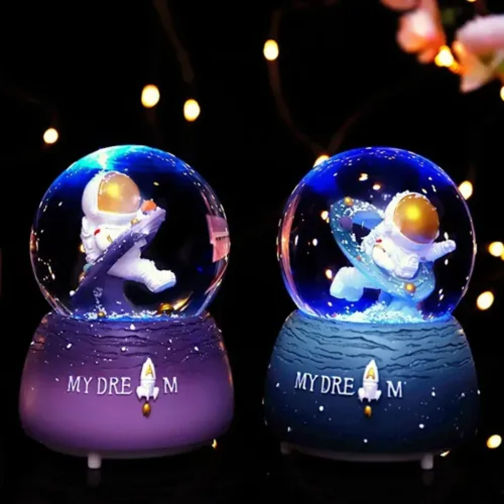 Sevimli Astronot Kar KüresiÜrün AçıklamasıEvinize, ofisinize veya çalışma masanıza uzayın büyülü atmosferini taşıyın! Sevimli Astronot Kar Küresi, hem çocukların hem de yetişkinlerin ilgisini çekecek, hayalperest bir tasarıma sahiptir. Kürenin içinde beyaz astronot figürü, gezegen halkaları ve parıldayan altın detaylarla uzayda süzülüyormuş gibi görünür. Küreyi salladığınızda içindeki parıltılı kar taneleri yavaşça süzülür, büyüleyici bir görüntü oluşturur. Tabanında "MY DREAM" (Hayalim) yazısı ve küçük bir roket figürü bulunmaktadır.Ürün ÖzellikleriTasarım: Astronot ve uzay temalı figür içeren kar küresi.Boyut: Orta boyuttadır.Taban: Yıldızlar ve roket figürleri bulunan, genellikle mor/lila veya mavi/turkuaz geçişli, dekoratif tasarımlı taban.Özellikler: Sallandığında parıltılı kar taneleri oluşur. Görsellerden anlaşıldığı üzere, tabanında genellikle müzik veya LED aydınlatma mekanizması için pil yuvası bulunur.Malzeme: Kaliteli malzemeden üretilmiştir, uzun ömürlü ve dekoratif bir objedir.Kullanım AlanlarıÇocuk Odası ve Genç Odası: Uzay, bilim veya galaksi temalı dekorasyonun merkezi parçası olarak.Ofis Masası: Monotonluğu kıran, hayal gücünü harekete geçiren, ilgi çekici bir masaüstü biblo olarak.Salon/Raf Dekorasyonu: Kitaplıklar ve vitrinlerde kendine özgü, büyüleyici bir köşe oluşturmak için.Özel Hediye: Astronot veya uzay meraklısı sevdiklerinize, özellikle doğum günü ve yılbaşı gibi özel günlerde verilebilecek şık ve anlamlı bir hediye seçeneğidir.Paket İçeriği1 Adet Sevimli Astronot Kar Küresi.