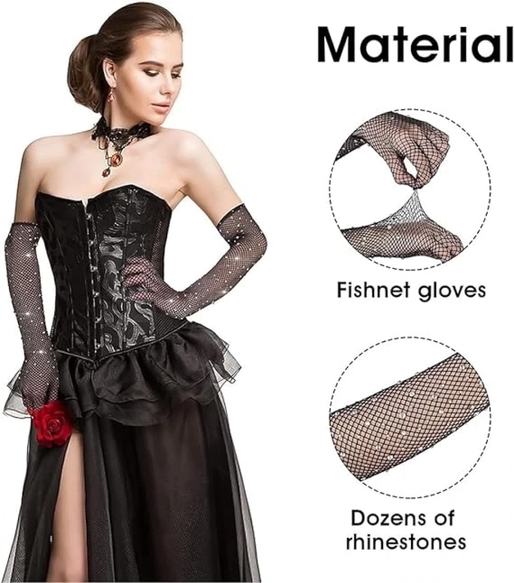 BFS 120 Cm Siyah Yakalı Cadı Pelerini Cadı Şapkası Ve 1 Çift Siyah Kısa File Tüm Eldiven Seti 3 Parça
