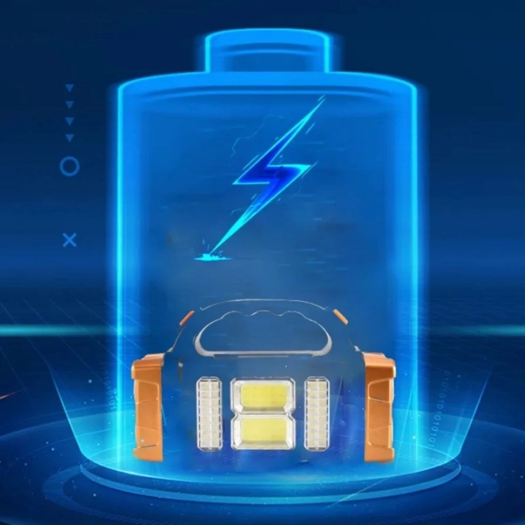 Solar ve USB Şarjlı LED + COB El Feneri | 1500 mAh Şarjlı Taşınabilir Çalışma Işığı–Su Geçirmez