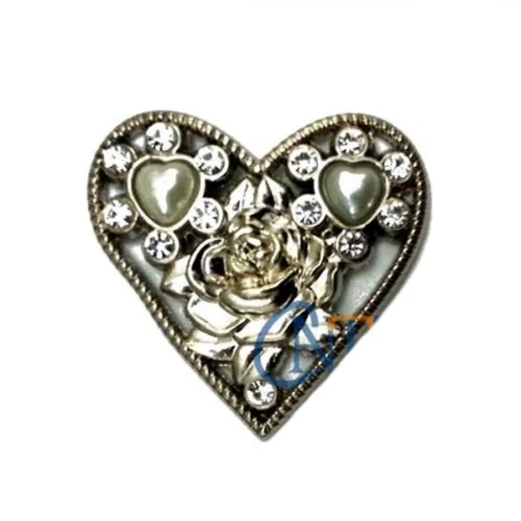 Taşlı Kalp Broş, Kutu, Sandık Süsü - Nikel, 1 Adet