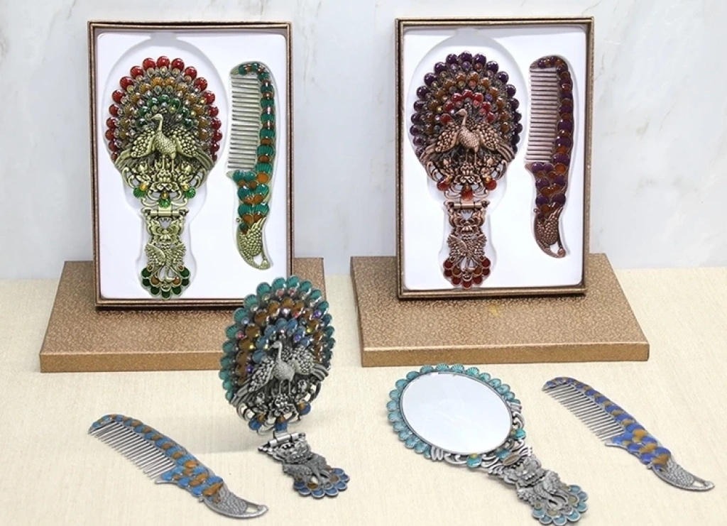 Tavuskuşu Katlanabilir Ayna Ve Tarak Seti Büyük Boy Alk4913 Ürün Ölçüleri 21*10 Cm