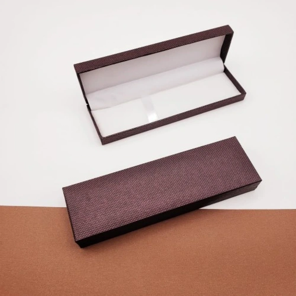 Tekli Kalem KutusuTekli kalem kutusu, özenle tasarlanmış şık görünümüyle tek bir kalemi özel ve zarif bir şekilde sunmak için ideal bir kutu modelidir. İç kısmı beyaz saten kumaş ile kaplanmış olup içine yerleştirilen her kalemi daha şık ve değerli gösterir. Hem kişisel hediyeler hem de promosyon amaçlı kullanım için son derece uygun bir seçenektir.Kalem kutusunun dış yüzeyindeki detaylı desenler, kutuya estetik bir görünüm kazandırır. Hem klasik hem de modern tasarımları seven herkes için uygun olan bu kutu, hediye edeceğiniz kalemi daha özel bir hale getirir. Üstelik kutu üzerine baskı yapılabilmesi, onu kişiye özel hale getirmenize olanak tanır.Tekli Kalem Kutusu Özellikleri:Kaliteli malzemeden üretilmiştir.Detaylı desenleriyle estetik bir tasarıma sahiptir.Kutu içi beyaz saten kaplıdır.Kalemi sabitlemek için sünger bulunmaktadır.İçine koyulan kalemi şık bir hediye sunumuna dönüştürür.Baskıya uygun yapısıyla kişiye özel hale getirilebilir.Kalem Kutusu Ölçüsü: 16 cm × 5 cm