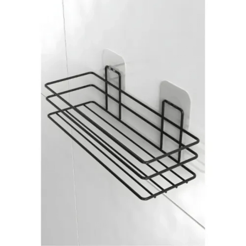 Yapışkanlı Duş ve Banyo Rafı – SiyahÜrün Açıklaması:Yapışkanlı duş ve banyo rafı, banyoda delme işlemi yapmadan pratik bir şekilde düzen sağlamanıza yardımcı olur. Siyah kaplamalı paslanmaz metal malzemeden üretilmiş olup paslanmaya karşı dayanıklıdır ve uzun ömürlü kullanım sunar.Üç telli koruma kenarlığı, ürünlerinizin düşmesini önlerken, açık taban tasarımı su birikimini engeller ve hijyenik bir kullanım sağlar. Şeffaf yapışkan panel sayesinde banyonuza, duş alanınıza veya lavabo yanına kolayca monte edilebilir.Ortalama 3-5 kg taşıma kapasitesi ile şampuan, sabun, duş jeli ve benzeri ürünleri kolay erişilebilir biçimde organize edebilirsiniz. Modern ve şık tasarımı ile banyo estetiğini bozmadan kullanıma uygundur. Ayrıca mutfak veya diğer ıslak alanlarda da rahatlıkla kullanılabilir.Ürün Özellikleri:Delme gerektirmez: Kolay ve hızlı montajPaslanmaz Malzeme: Siyah kaplamalı metalÜç Telli Koruma Kenarlığı: Ürünlerin güvenliğini sağlarAçık Taban Tasarımı: Su birikmesini önlerTaşıma Kapasitesi: 3-5 kgÇok Amaçlı Kullanım: Banyo, duş, lavabo ve mutfakta kullanım