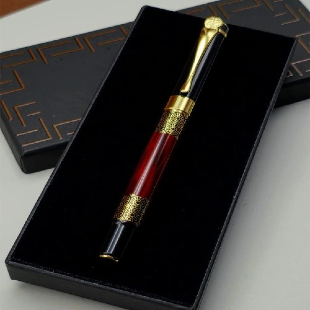 Yeni Model Desenli Metal Roller KalemYeni model desenli metal roller kalem, özel motif baskısına sahip kutusu ve şık metal tasarımıyla dikkat çeken hediyelik kalem modellerinden biridir. Gold detaylı desenleri ve estetik görünümü sayesinde hem günlük kullanım hem de özel günlerde hediye olarak sunmak için mükemmel bir tercihtir.Kahverengi özel tasarım kutusu içinde süngerli şekilde yer alan gold desenli roller kalem; Öğretmenler Günü, Babalar Günü, Anneler Günü gibi özel günlerde sevdiklerinize verebileceğiniz anlamlı ve zarif bir hediyedir. Kalem ve kutu üzerine isim, logo veya özel bir mesaj baskısı yapılarak kişiye özel bir hale getirilebilmesi de büyük avantaj sağlar.Yeni Model Desenli Metal Roller Kalem Özellikleri:Kutu kaliteli mukavva malzemeden üretilmiştir.Kutu içi süngerli olarak gönderilir.Kutu üzerinde özel motif baskısı bulunmaktadır.Kalem metal malzemeden üretilmiştir.Kalem roller uçtur.Metal kalemin üzerinde özel desenler yer almaktadır.Kalem ve kutu baskıya uygundur.Özel günlerde hediye olarak ideal bir seçenektir.Not: Set içeriği ayrı gönderilmektedir.Kutu Ölçüsü: 17 cm × 7.5 cm × 2.3 cmKalem Ölçüsü: 14 cm