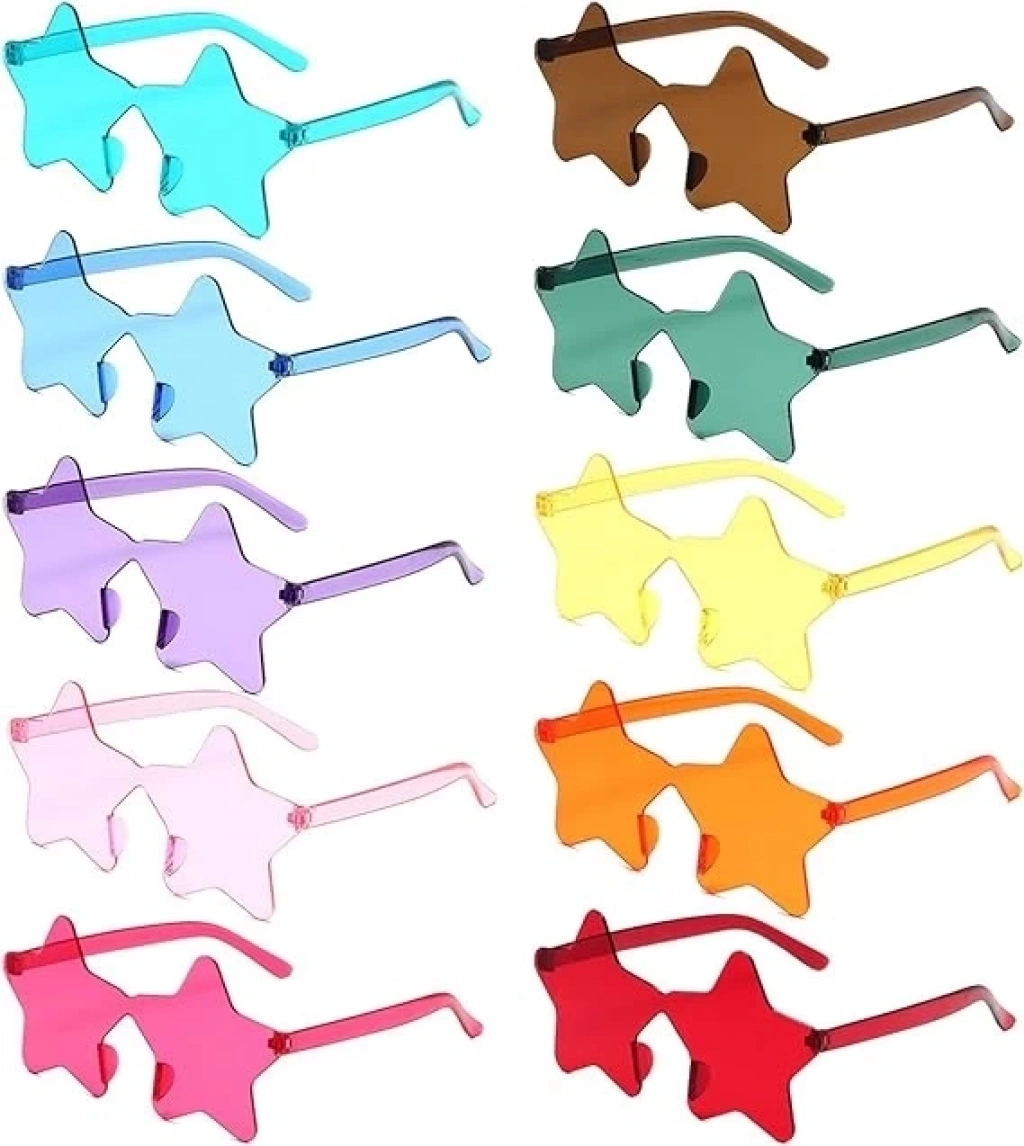 Yıldız Şekilli Çerçevesiz Parti Gözlüğü 6 Renk 6 Adet